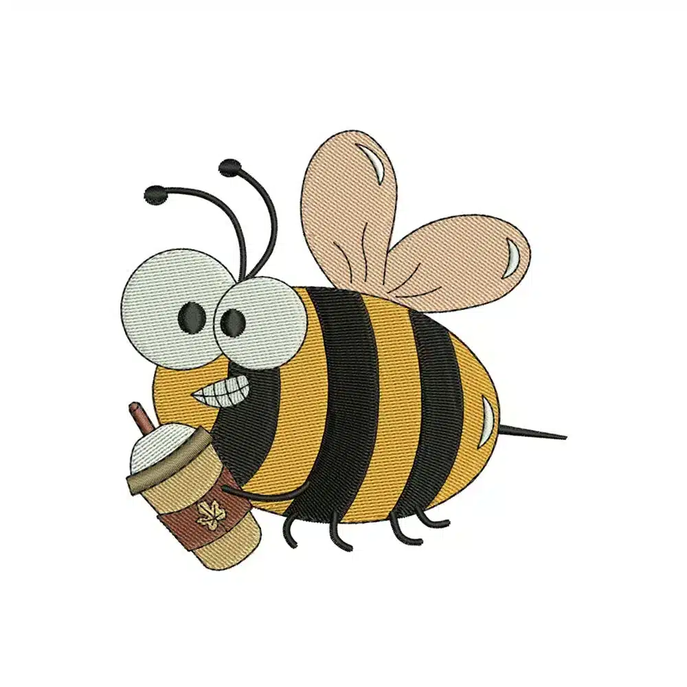 Buzz into the cozy vibes of autumn with this irresistibly cute “Honey Bee with Autumn Glass” embroidery design. This charming illustration features a plump, happy bee with big, expressive eyes, gleefully clutching a delightful autumn-themed beverage. The design is brimming with warmth and whimsical charm, perfect for the crisp air of fall.