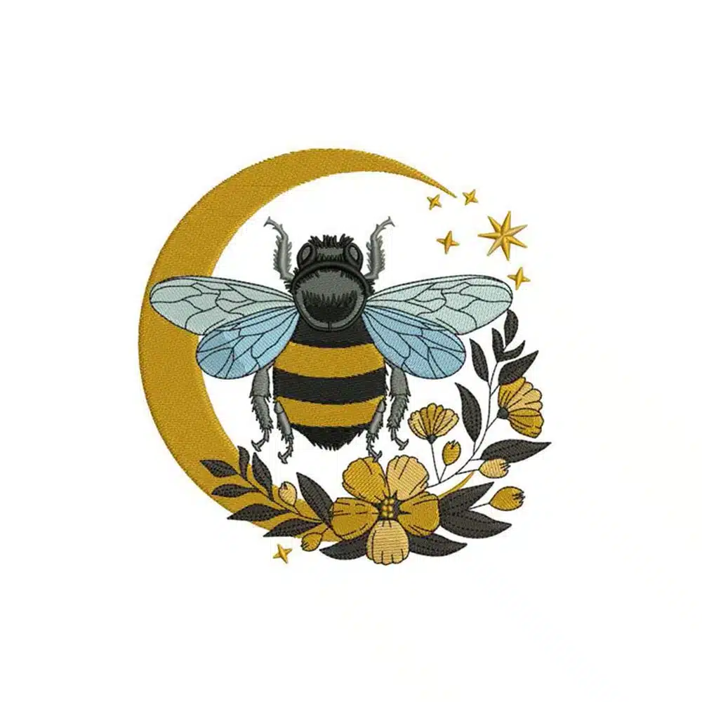Celestial Bee and Floral Moon Embroidery Design