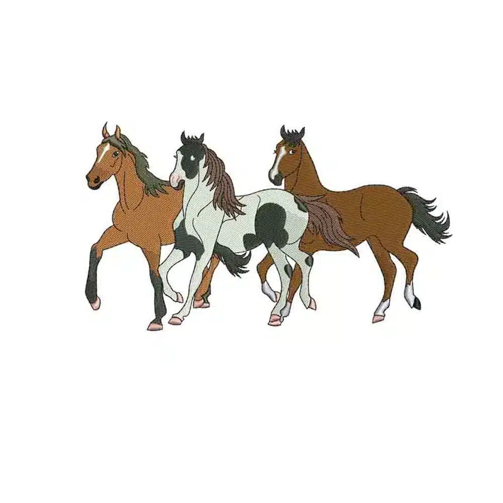 Three Horses Running Machine Embroidery Design